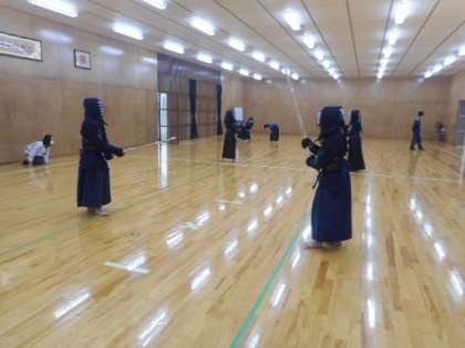 剣道部は、切り返しの練習に取り組んでいました。緊張感のある中、竹刀の音が道場に響き渡っていました。