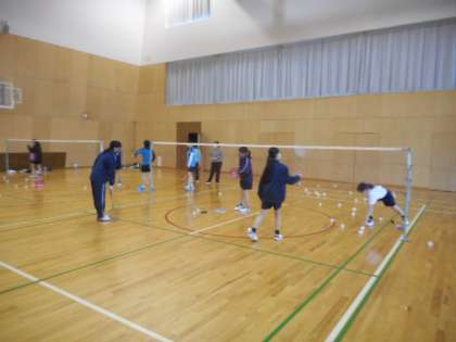 バドミントン部は、体育館に入るといつものように爽やかな挨拶で出迎えてくれました。互いに声を掛け合い、工夫して練習に取り組んでいました。