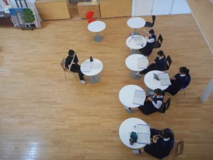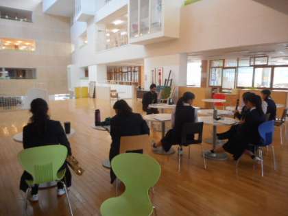 吹き抜けのホールで練習するパートがあり、校舎内に、素敵なハーモニーが響き渡っていました。
