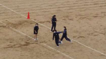 5月7日(金) 3年生女子の体育の様子です。 リレー練習に取り組みました。