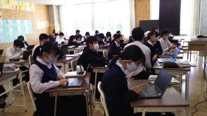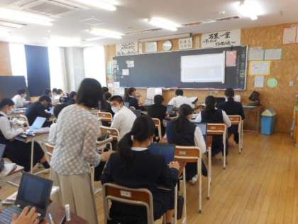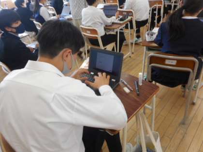 本日の授業(2年生:その1) 公開日 2021/05/10 更新日 2021/05/10 芝園の一日 5月10日(月) 2年生の家庭科の様子です。 「衣服によって布地が異なるのはなぜか」という課題に、1人1台端末(タブレット)を用いて取り組みました。