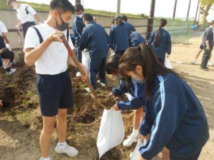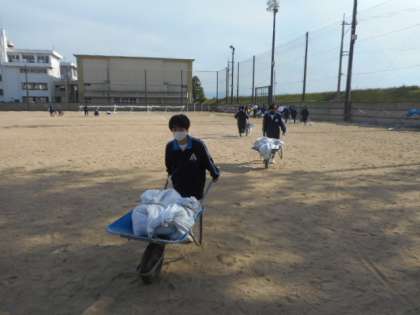 体育大会に向けて(その1) 公開日 2021/05/13 更新日 2021/05/13 芝園の一日 5月13日(木) 昨日の放課後の準備の様子です。 2年生の有志が中心となってテントの重しになる土嚢を約100個作りました。多くの生徒が、色々な場面で活躍しています。