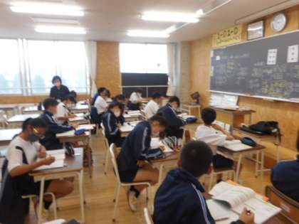 本日の授業(1年生:その2) 公開日 2021/05/17 更新日 2021/05/17 芝園の一日 5月17日(月) 1年生の授業の様子です。 数学科は、少人数授業を行っています。2つの教室に分かれて取り組んでいます。