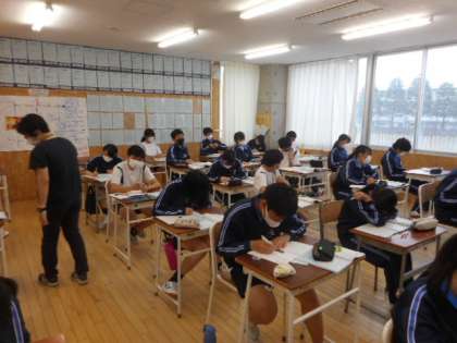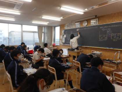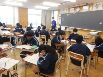 本日の授業(3年生) 公開日 2021/05/17 更新日 2021/05/17 芝園の一日 5月17日(月) 3年生の授業の様子です。 理科では、中和について学習しました。 英語科では、グループ学習を通して課題について考えました。 数学科では、計算問題に取り組んでいました。