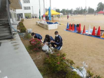 体育大会(その1) 公開日 2021/05/20 更新日 2021/05/20 芝園の一日 5月20日(木) 朝の準備の様子です。 生徒はいつもより早く登校して、テントを立てたり係活動の準備をしたりと、進んで活動に取り組んでいました。