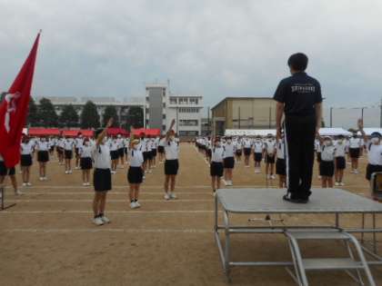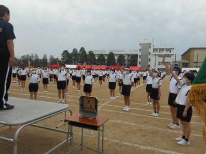 体育大会(その3) 公開日 2021/05/20 更新日 2021/05/20 芝園の一日 5月20日(木) 開会式の様子です。 実行委員長の言葉、校長先生からの激励の言葉、選手宣誓の後に、保健委員長の指揮で準備体操をしました。
