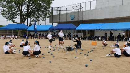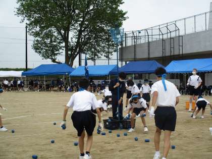 体育大会(その17) 公開日 2021/05/20 更新日 2021/05/20 芝園の一日 5月20日(木) 1学年の学年種目「令和 玉入れ合戦」の様子」です。 どの団も作戦を練って、玉入れに挑みました。
