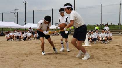 体育大会(その23) 公開日 2021/05/20 更新日 2021/05/20 芝園の一日 5月20日(木) 3学年の学年種目「シヴァンゲリオン」の様子です。 2つのボールが落ちないように注意しながら行いました。