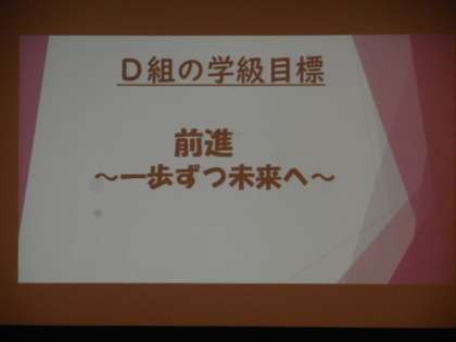 学年集会の様子です。学級目標を紹介しました。