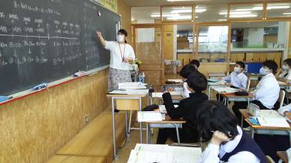 本日の授業(1年生:その3) 公開日 2021/05/26 更新日 2021/05/26 芝園の一日 5月26日(水) 1年生の数学の様子です。 少人数に分かれ、「正負の数で、2つの数の乗法について考えよう」という課題に取り組みました。