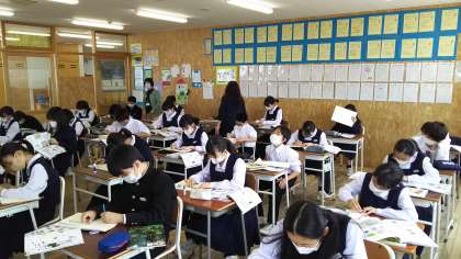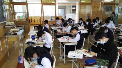 本日の授業(1年生:その4) 公開日 2021/05/26 更新日 2021/05/26 芝園の一日 5月26日(水) 1年生の美術の様子です。 鉛筆でグレースケールを意識して、作品作りに取り組みました。