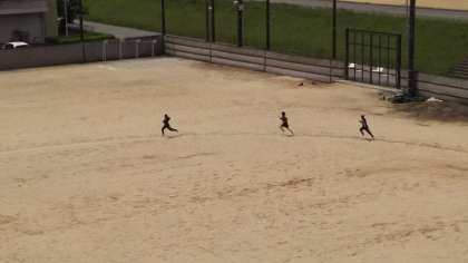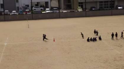 リレーのバトンパスの練習をしました。かけ声をかけ合い、バトンをつないでいました。