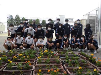 美化委員会の花植え 公開日 2021/05/26 更新日 2021/05/26 芝園の一日 5月26日(水) 本日の放課後、美化委員会で花植えを行いました。 用務員の方にやり方を教えていただき、手際よく行いました。作業後の掃除もばっちりです! サルビア、メランポジウム、マリーゴールドなど、早く満開になるところが見たいものです。 委員のみんなの笑顔が、きれいに咲き誇っています。