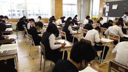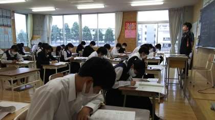3年生が、全国学力・学習状況調査を受けている様子です。