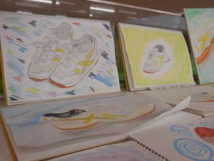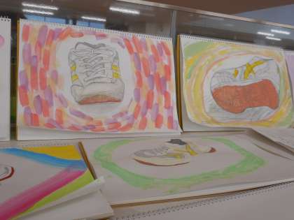 内ばきシューズの作品が仕上がってきました。水彩の技を工夫して、頑張って彩色していました。