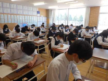 3年生の中間考査1日目の様子です。