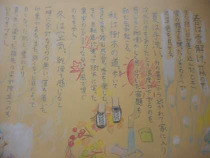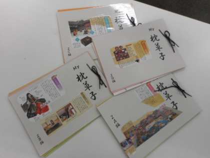 生徒は、自然や人に関することを特色ごとに集めた「ものづくし」や、自然や身の回りのことの印象などを自由に書いた「随想」など自分でテーマを選び、清少納言になりきって書きました。