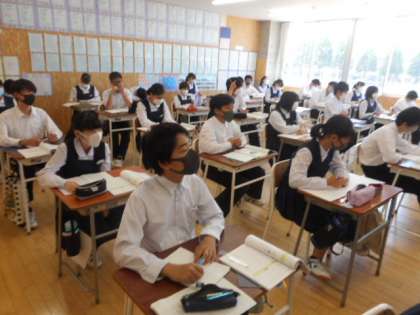 数学では、中間考査の問題の解説を聞き、苦手な部分や次の考査に向けての課題を確認しました。