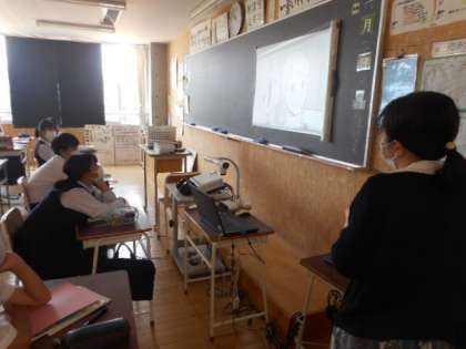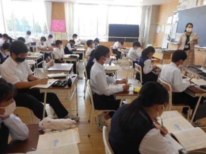 道徳では、クラス全体の座席をコの字型にして、顔を見合えるようにすることで意見が聞きやすい雰囲気で授業が進められていました。