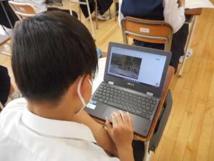 総合的な学習の時間(3年生) 公開日 2021/06/02 更新日 2021/06/02 芝園の一日 6月2日(水) 3年生の総合的な学習の時間の様子です。 3年生は「持続可能な社会の実現に向けて、自分たちにできることを考えよう」というテーマで、課題追究学習に取り組んでいます。 今日は、課題を設定するためにウェビングをしたり、1人1台端末(タブレット)を使って、気になる事柄について調べました。