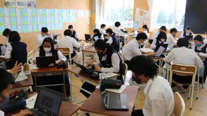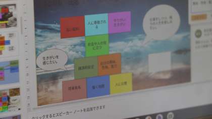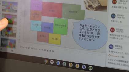 総合的な学習の時間(2年生:その3) 公開日 2021/06/02 更新日 2021/06/02 芝園の一日 6月2日(水) 「14歳の未来展望」というテーマで、自分の進む道や職業について考えました。Chromebookを活用して、考えた内容を共有したり、VTRを視聴して働く意義について考えたりしました。