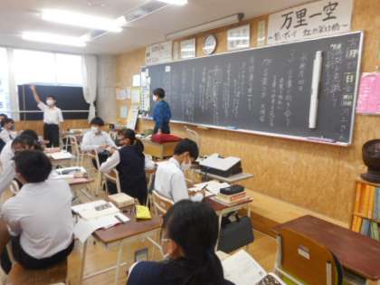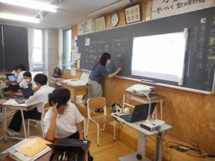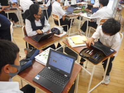 本日の授業(2年生:その1) 公開日 2021/06/04 更新日 2021/06/04 芝園の一日 6月4日(金) 2年生の授業の様子です。 国語では、説明的文章を読み、グループで意見の交流をしました。 家庭科では、1人1台端末(タブレット)を活用した授業が進められていました。同じグループの生徒の意見だけでなく、クラス全体で意見を交流しました。