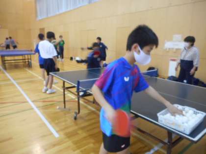 卓球部は、部員数が多く大所帯ですが、練習場所を工夫して取り組んでいます。顧問やコーチの方からアドバイスを受け、元気よく活動に取り組んでいました。