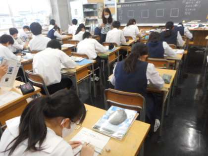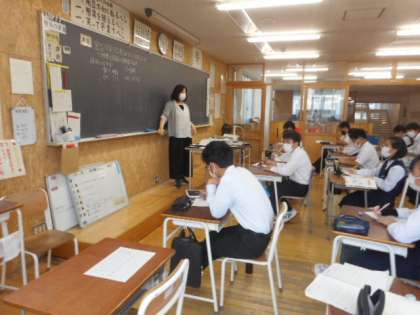 本日の授業(3年生) 公開日 2021/06/08 更新日 2021/06/08 芝園の一日 6月8日(火) 3年生の授業の様子です。 道徳の授業では、元広島カープの黒田選手の体験をもとに生き方について考えました。 理科では、化学分野の計算に取り組みました。 美術では、デザインについて学習しました。