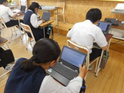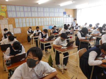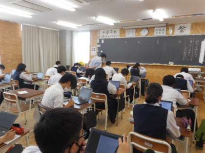 本日の授業(3年生:その3) 公開日 2021/06/11 更新日 2021/06/11 芝園の一日 6月11日(金) 3年生の国語の様子です。 俳句の学習では、1人1台端末(タブレット)を使って歳時記を調べました。俳句の創作にいかすことができるよう、季語を確認しました。