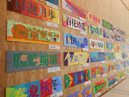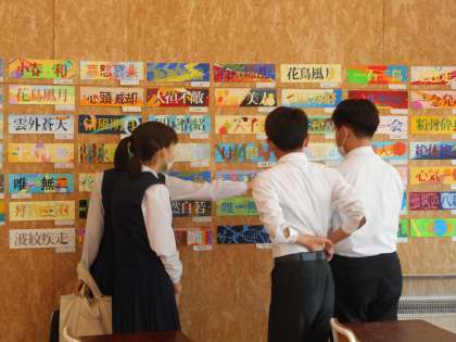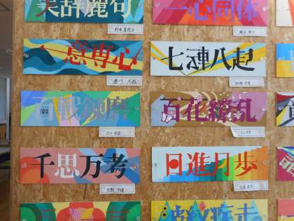 3学年 美術(その1) 公開日 2021/06/13 更新日 2021/06/13 芝園の一日 6月13日(日) 伝える「四字熟語」の作品を掲示しています。 抽象形で、文字のイメージを色と形で表現しています。言葉の意味が伝わってきます。
