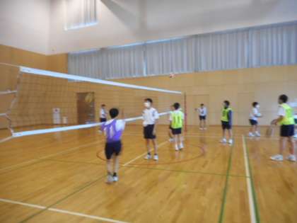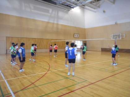 バレーボールのスパイク練習に取り組んでいました。連携して攻める工夫をしていました。