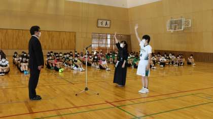富山市選手権大会壮行会(その1) 公開日 2021/06/15 更新日 2021/06/15 芝園の一日 6月15日(火) 今週末に控えた富山市選手権大会にむけて、壮行会を行いました。 出場する選手を代表し、各部の部長が意気込みを発表しました。 また、代表の選手が選手宣誓をしました。