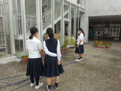 朝の風景 公開日 2021/06/17 更新日 2021/06/17 芝園の一日 6月17日(木) 3年生のGAT(学年アシスタントチーム)のメンバーが今朝も水やりを自主的に行ってくれていました。 4月当初から継続して行ってくれています。地道な取組を続ける姿が爽やかで素敵です。