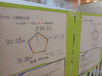 各クラスでの呼びかけで、以前より提出率が上がった教科がありました。Chromebookで集計し、前回との比較もできました。