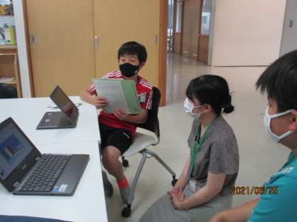 今日は、芝園小の6年生が英語の時間に作っているプレゼンテーションについて、中学校の英語の先生にアドバイスをもらいに来ました。ALTの先生に「行ってみたい国」を紹介するそうです。アドバイスの結果、発音がよくなったり、ジェスチャーがついたり、とても楽しいプレゼンテーションとなりました。