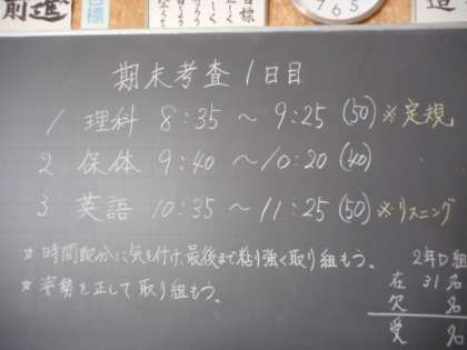 2日目は、1限国語、2限美術、3限数学の予定です。