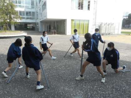 陸上競技部は、体幹を鍛えるトレーニングを行っていました。