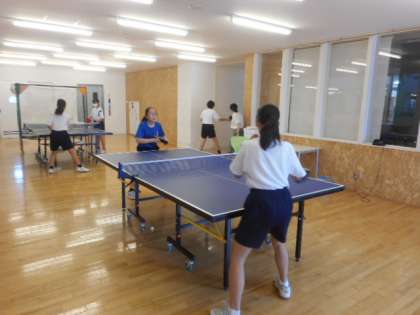 卓球部は、上級生が下級生に技術を丁寧に伝えていました。