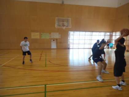 男子バスケットボール部は、試合を想定して、マンツーマンディフェンスの練習をしました。