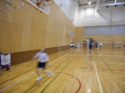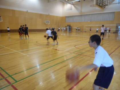 男子バスケットボール部は、1対1の攻防練習をしました。女子バスケットボール部は、基本のレイアップシュートの練習に取り組んでいました。