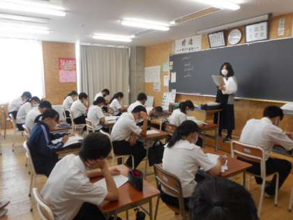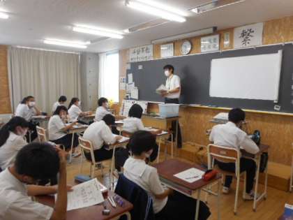 体育では、ソフトボールを行いました。試合の前には、作戦を話し合って臨んでいました。理科と英語では、期末考査の解説が行われていました。来週には、校内学力調査も控えており、真剣な眼差しで授業を受けていました。