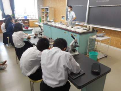 理科では、生物分野の学習が始まりました。顕微鏡の使い方について学習しました。