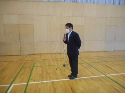 生徒会役員が激励の言葉を述べた後に、高木校長先生から「最後まであきらめずに試合に臨んで欲しい」という言葉をいただきました。