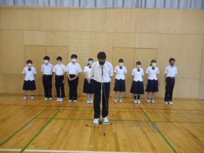 富山県中学校総合選手権・吹奏楽コンクール壮行会(その4) 公開日 2021/07/05 更新日 2021/07/05 芝園の一日 7月5日(月) 富山県中学校総合選手権と吹奏楽コンクールの壮行会を行いました。 大会やコンクールに参加する生徒が豊富を述べました。 写真は、吹奏楽部の様子です。