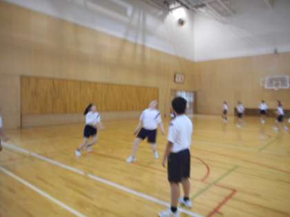 体育では、バレーボールに取り組みました。パスが繋がるように元気いっぱいに声をかけ合っていました。