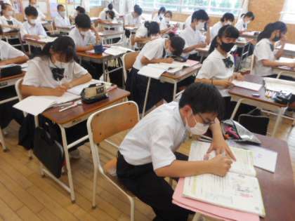 英語では、基本文を丁寧にノートに写し、基本の定着を図りました。