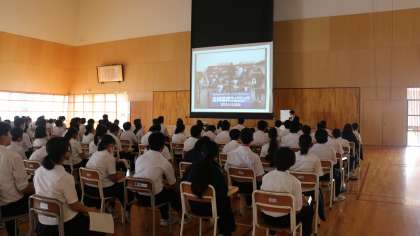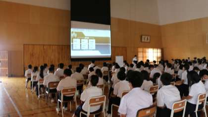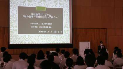 キャリア教育の一環として、医療機器販売、健康食品の製造・開発、弁護士、金属製品製造業のの方に来ていただきました。