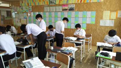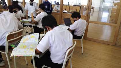本日の授業(2年生:その3) 公開日 2021/07/13 更新日 2021/07/13 芝園の一日 7月13日(火) 2年生の社会科の様子です。 「日本の商業・サービス業の特色」について、クロムブックを使って調べました。