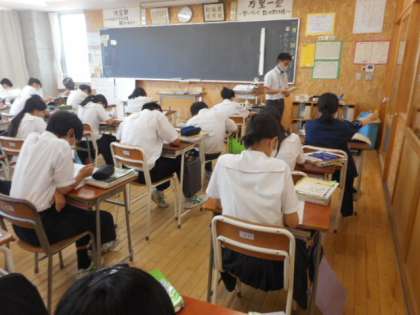 本日の授業(2年生:その2) 公開日 2021/07/16 更新日 2021/07/16 芝園の一日 7月16日(金) 2年生の授業の様子です。 社会では、地理の分野の学習に取り組みました。県名や県庁所在地について確認をしました。