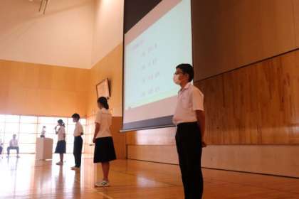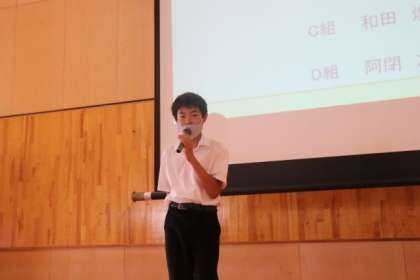 各クラスから生徒が一人、1学期を振り返り、自分ががんばってきたことを発表しました。